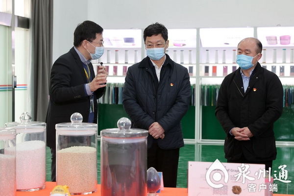 1月11日,市委書記康濤前往泉州臺商投資區調研重點項目和疫情防控工作,圖為在烯石新材料科技有限公司了解企業生產經營狀況。陳起拓 攝